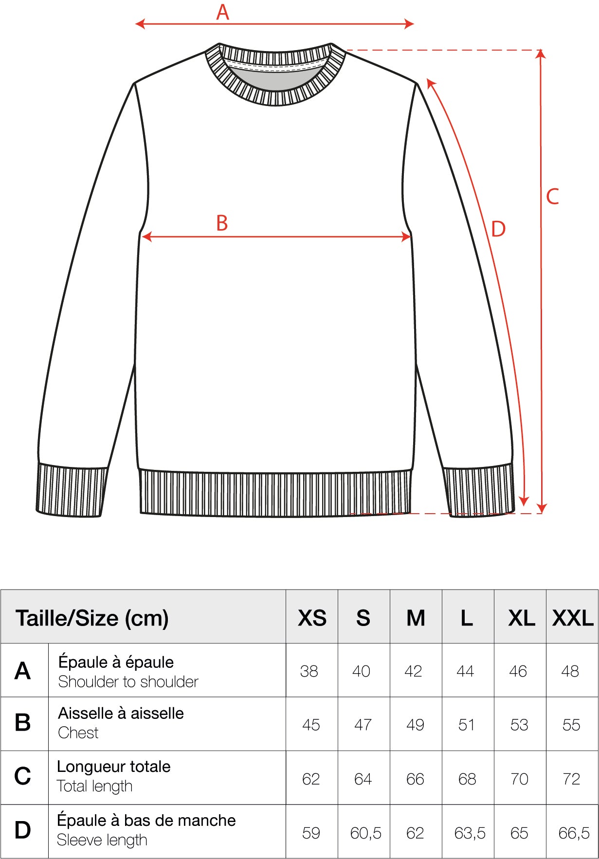 Notre mannequin José mesure 1m80 et porte une taille M. La coupe de ce pull est ajustée tout en restant confortable, nous vous recommandons donc de prendre votre taille habituelle. Pour des mesures complètes, nous vous invitons à vous référer au guide des tailles et à comparer avec l'un de vos pulls à la coupe similaire. Si vous hésitez entre deux tailles, nous vous recommandons de choisir la plus grande des deux.