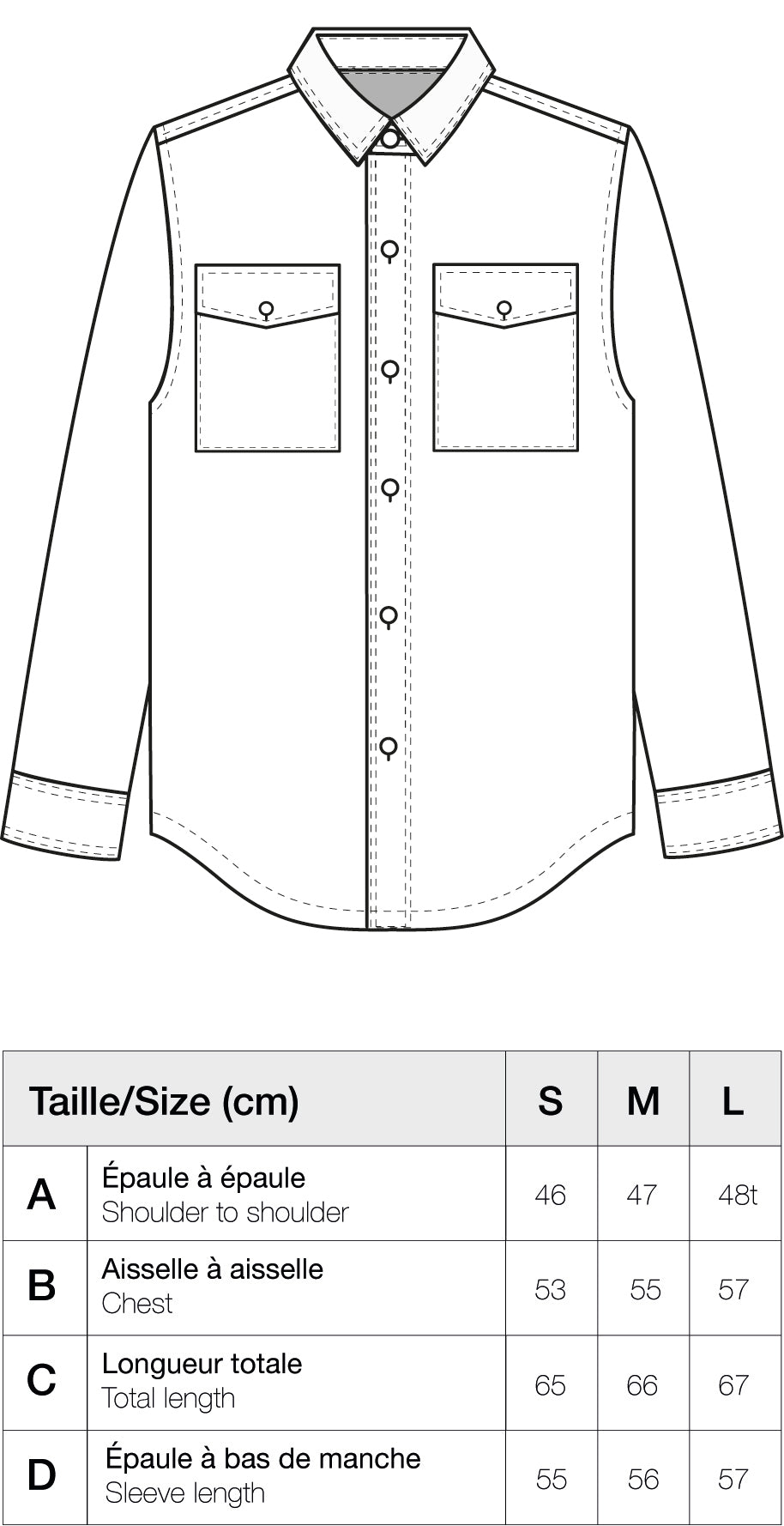 A titre indicatif, notre mannequin Maribel mesure 1m80 et porte une taille M. La coupe de cette surchemise est confortable, nous vous conseillons donc de prendre votre taille habituelle. Pour des mesures complètes, nous vous invitons à vous référer au guide des tailles et à comparer avec l'une de vos surchemises ou chemises à la coupe similaire. Si vous hésitez entre deux tailles, nous vous conseillons de choisir la plus grande des deux.
