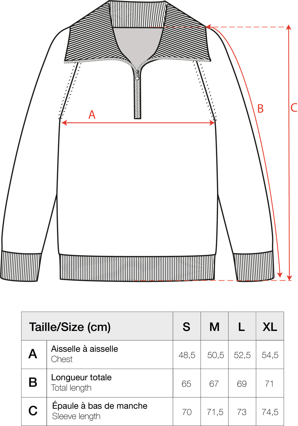 Notre mannequin José mesure 1m80 et porte du M. La coupe de ce pull est ajustée tout en restant confortable, nous vous recommandons donc de prendre votre taille habituelle. Pour des mesures complètes, nous vous invitons à vous référer au guide des tailles et à comparer avec l'un de vos pulls à la coupe similaire. Si vous hésitez entre deux tailles, nous vous recommandons de choisir la plus grande des deux.